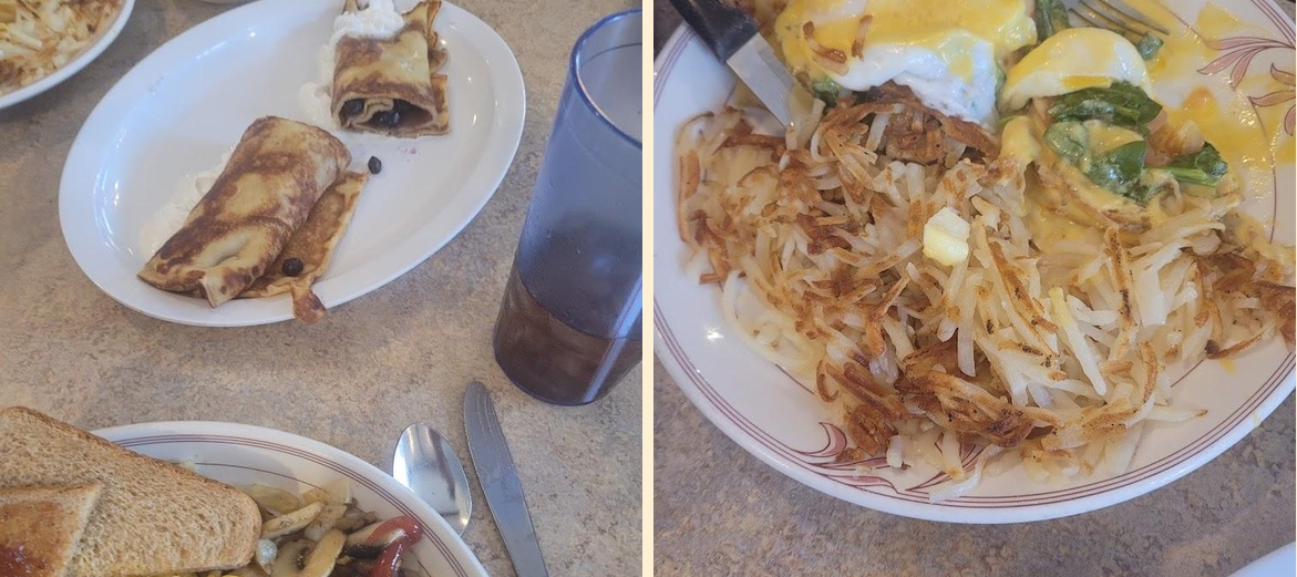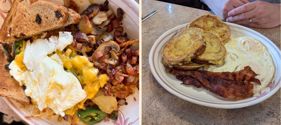 Visitors must try the pancakes and skillets. Both are popular breakfast favorites.