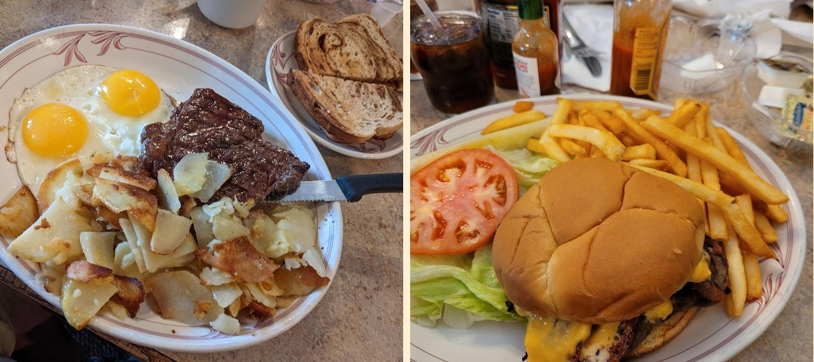 Don't miss their classic Eggs Benedict, fluffy pancakes, and hearty burgers. The homemade soups are also popular. Save room for desserts like cream pies and assorted cakes.